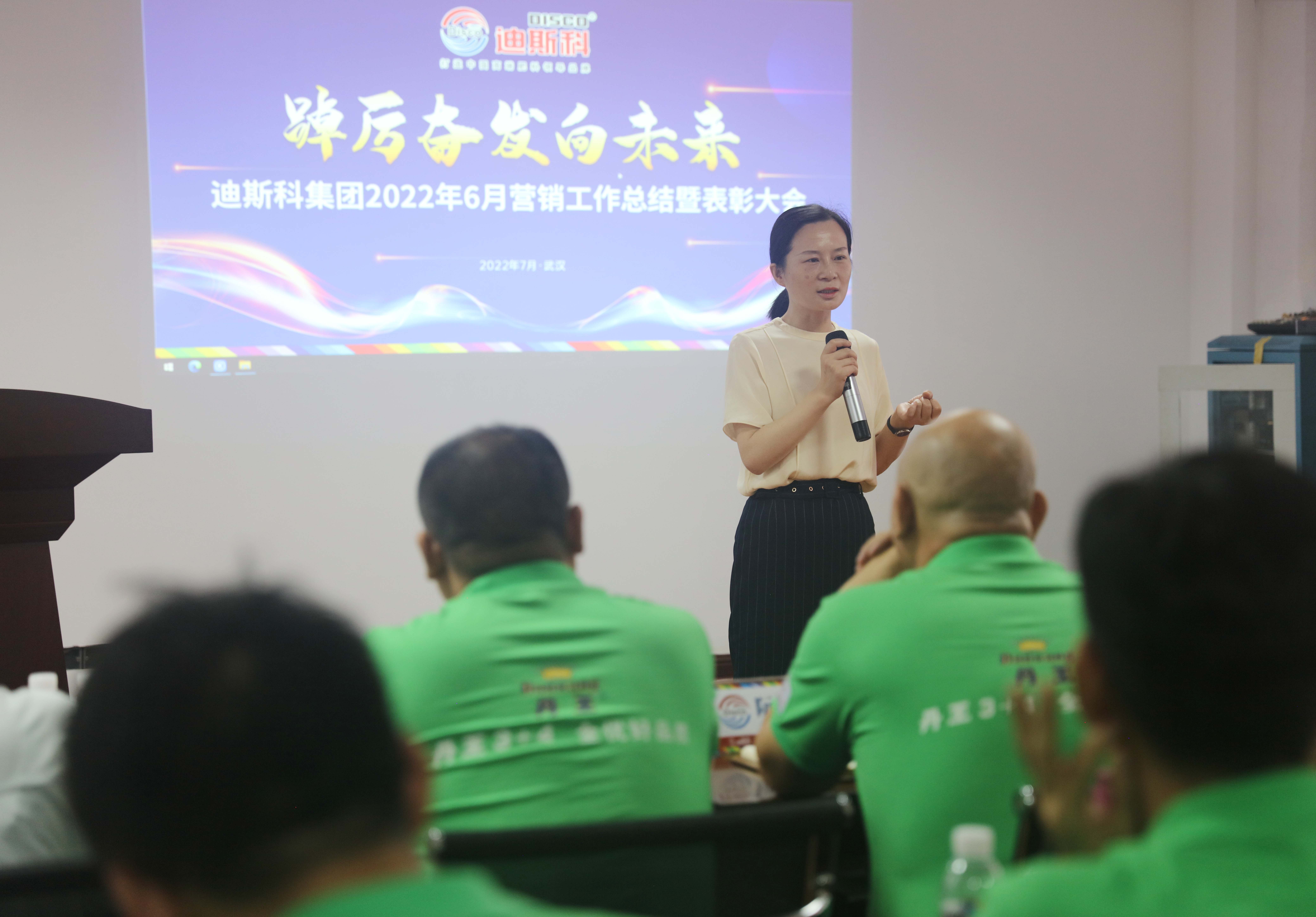 本次培训活动的最后一项议程——迪斯科集团2022年6月营销工作总结表彰大会在7月13日顺利召开。集团总裁办主任黄利红、全国营销管理中心总经理胡红涛、总裁办副主任蒋慧等领导出席会议,各销售公司负责人及区域营销精英参加会议。