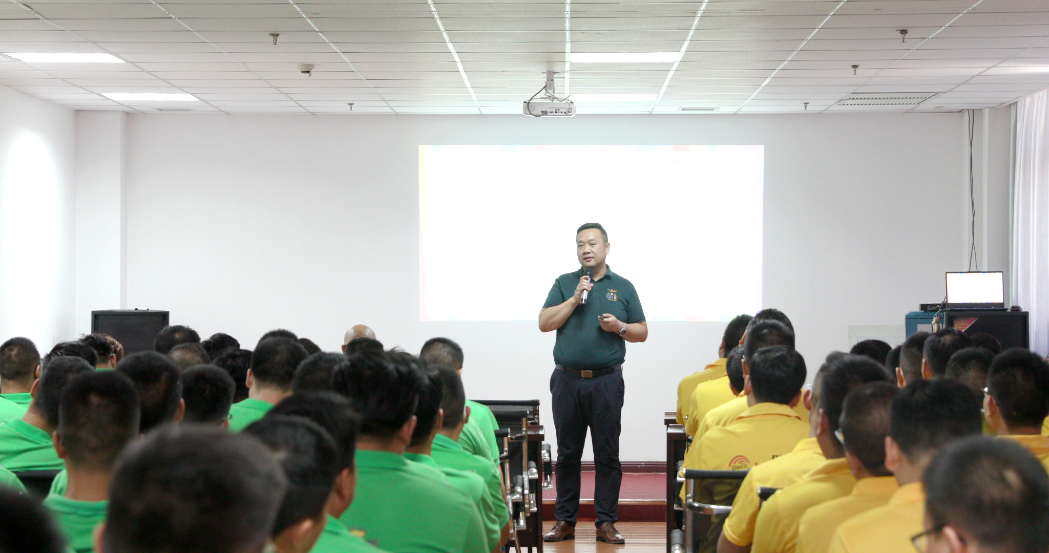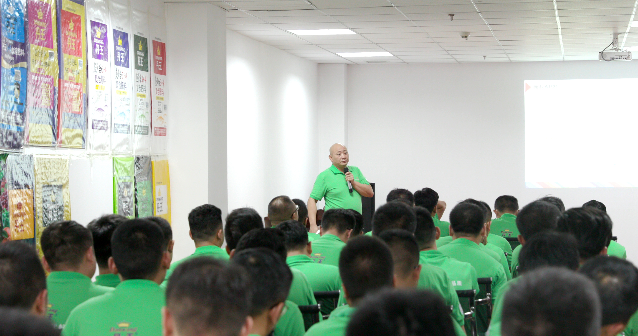 全国营销管理中心副总经理李轩以“打造卓越团队”为主题,从勤于思、精于业、聚于众、诚于行四个角度出发,通过真实案例,为大家讲述了善于创新、尽心尽责、团结协作、诚信正直对成就卓越团队和卓越自我的重要性。最后他用一句古诗寄语大家:黄沙百战穿金甲,不破楼兰誓不还!