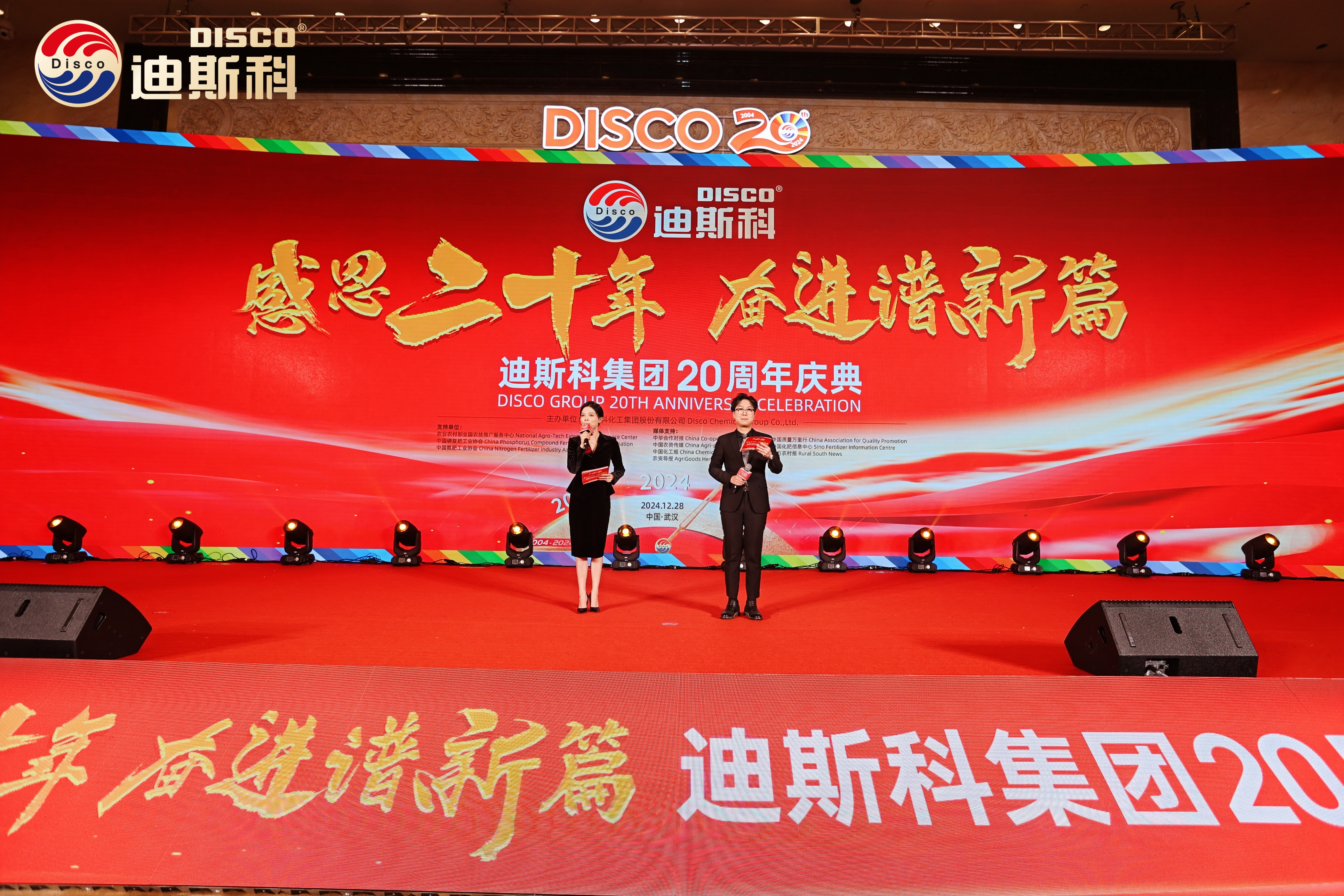 2024年12月28日,“感恩二十年 奋进谱新篇——迪斯科集团20周年庆典“在武汉隆重举行。政商界领导,全国农业知名专家,行业协会领导,媒体嘉宾,迪斯科供应商、经销商合作伙伴等600余人出席盛会,共襄盛典。