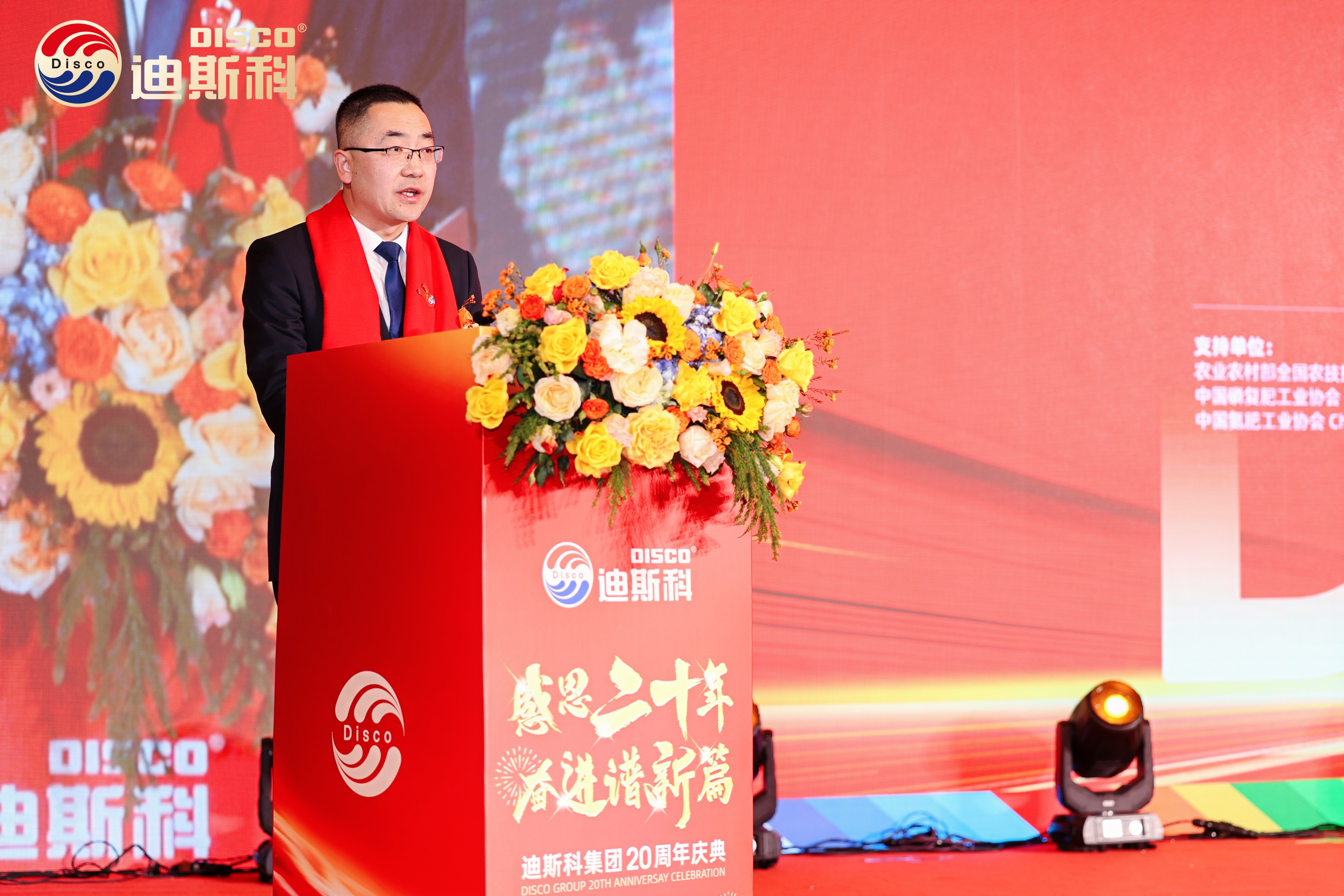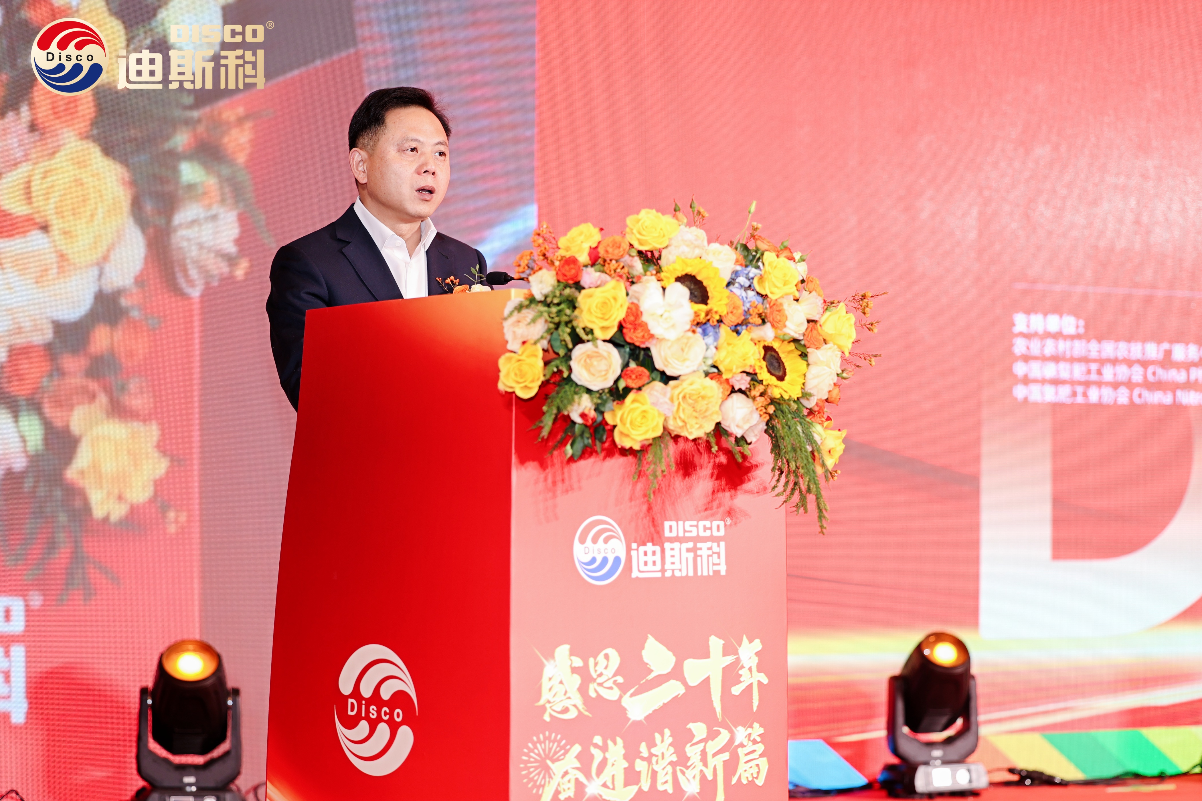 在二十年的岁月里,时间以其不朽的力量,将无数精彩瞬间凝固成永恒,镌刻着迪斯科深耕农资的每一个荣耀与光辉时刻,迪斯科集团董事长陈家辉发表热情洋溢的致辞,向现场嘉宾分享了迪斯科20年的发展历程。