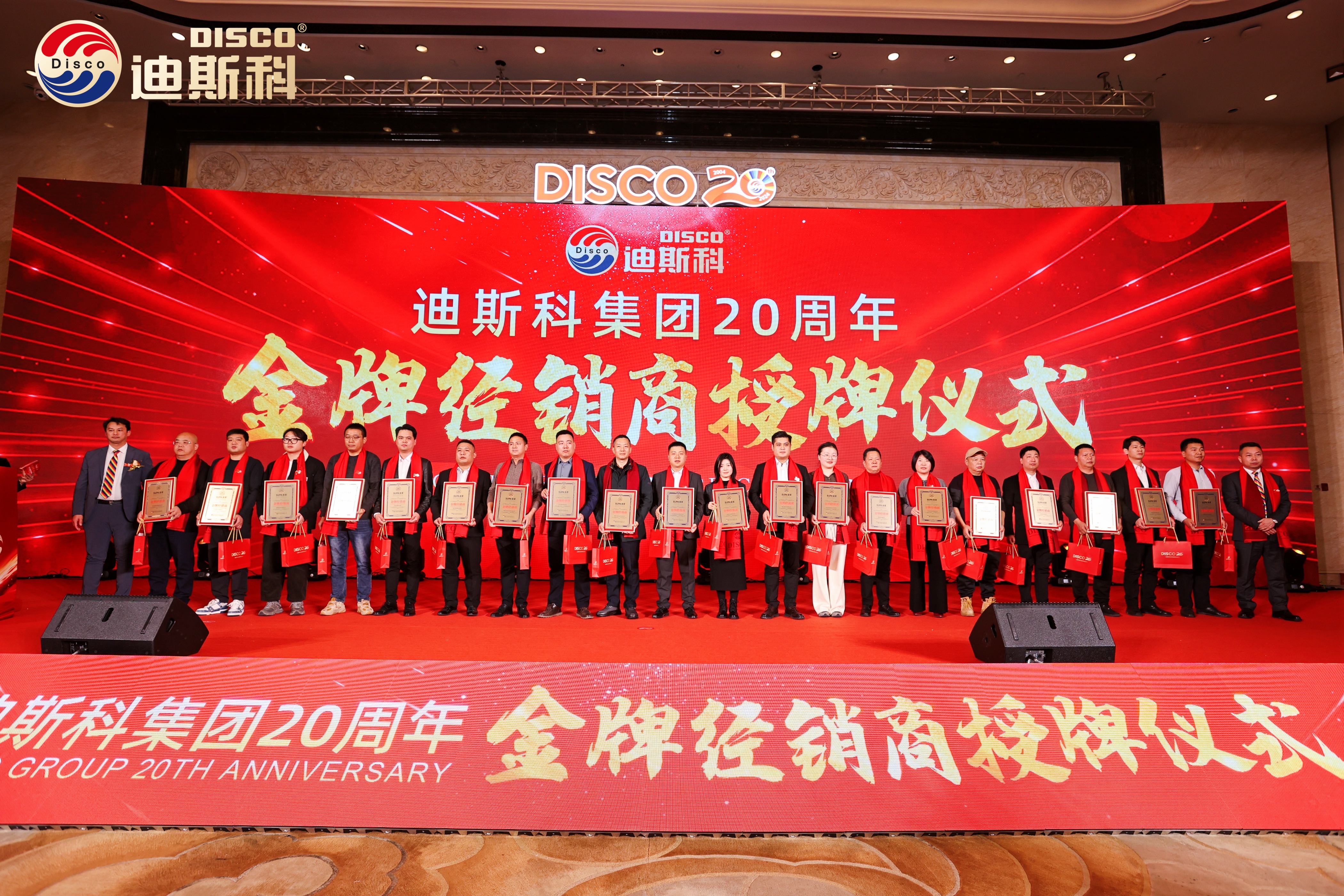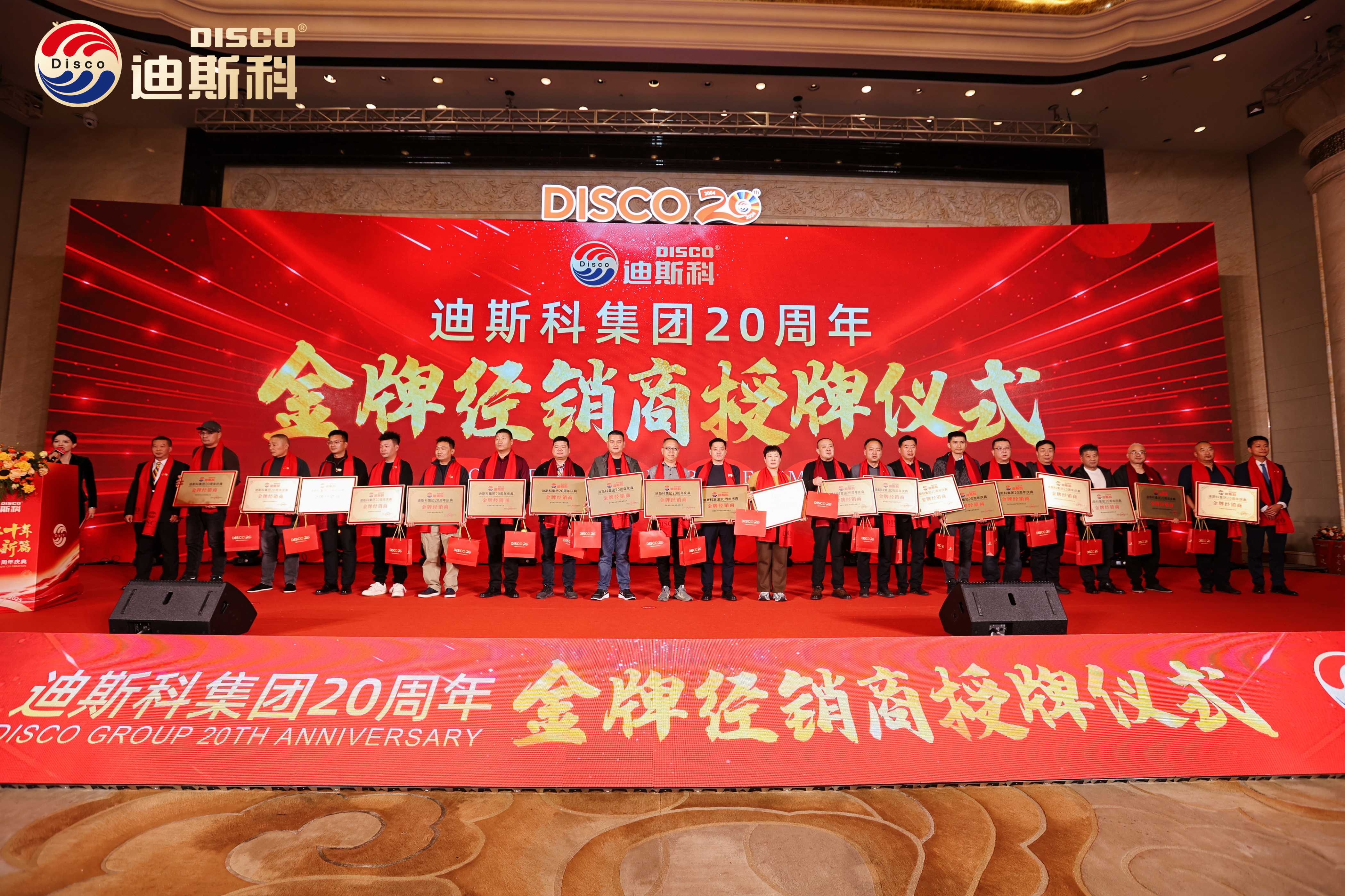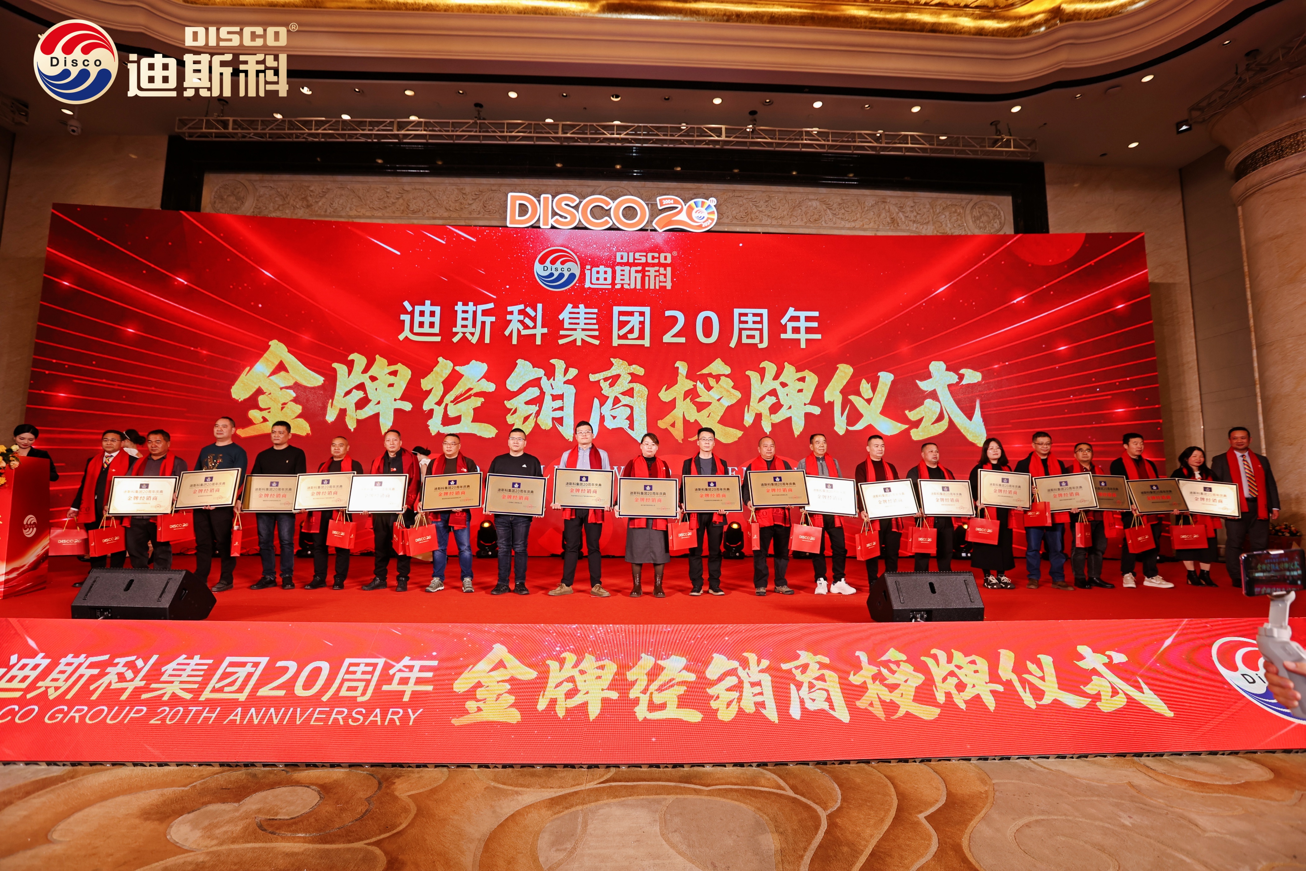 20年,是迪斯科集团与全国合作伙伴携手共进、彼此成就的一段辉煌征程。为感恩各位合作伙伴的支持,集团为全国金牌经销商及战略合作伙伴授牌,并赠礼迪斯科集团20周年纪念币。