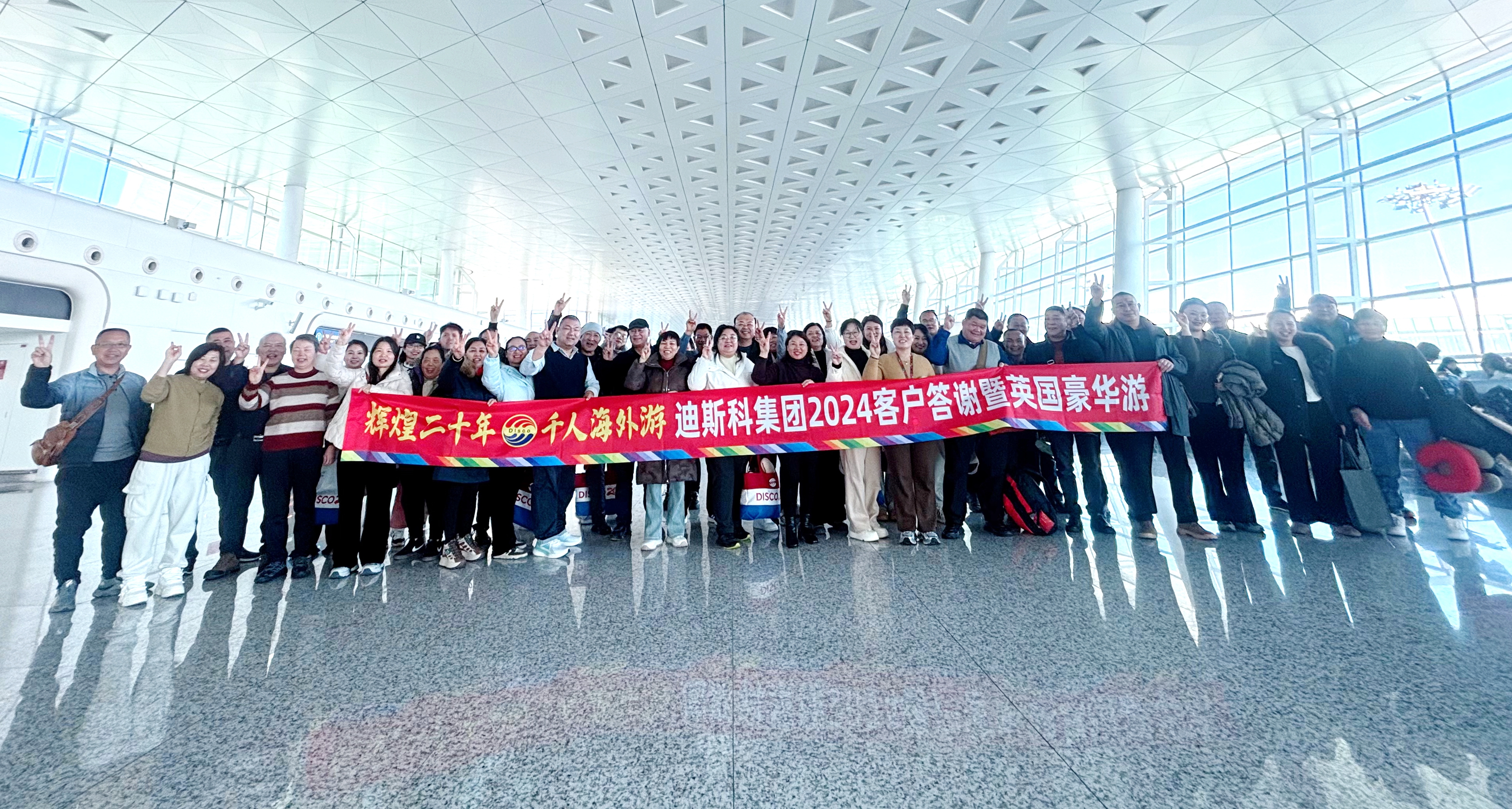 盛典结束后,迪斯科集团2024客户答谢暨“辉煌二十年 千人海外游”活动欢乐起航,来自全国各地的迪斯科经销商合作伙伴,满怀喜悦的心情踏上英国和日本的旅程。