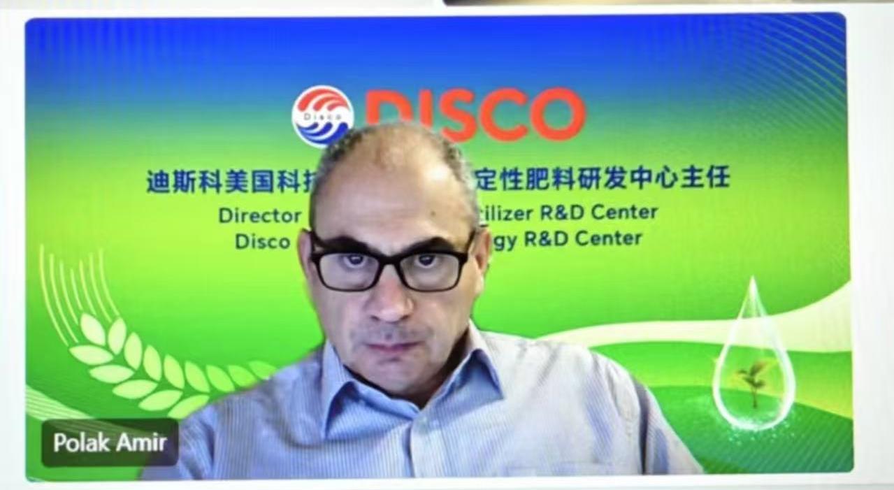 迪斯科美国研发中心、稳定肥料研发中心顾问阿米尔做了主题为《特种肥料的技术突破与发展方向》的报告。他详细讲述了关于各类肥料增效剂的功效,以及全球范围内目前最新的技术研究与成果应用,并结合迪斯科集团旗下稳定性肥料产品进行了技术与功效的解读。